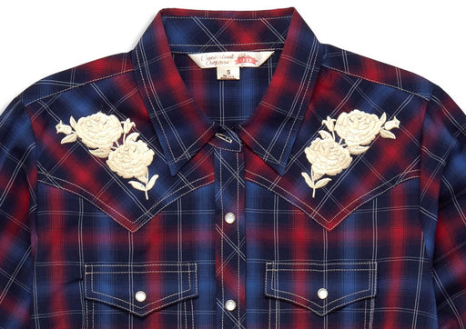 Ely and Walker Womens Bootstitch Embroidery Plaid Burgundy Poly/Cotton L/S Shirt