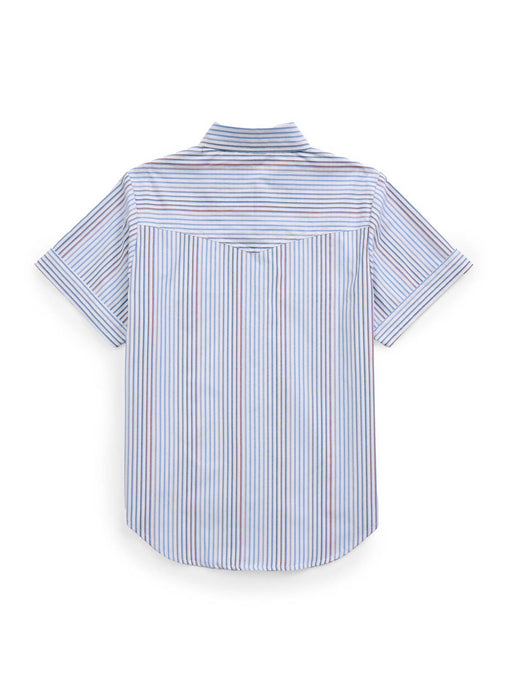 Ely and Walker Womens Multi Stripe Western White Poly/Cotton S/S Shirt