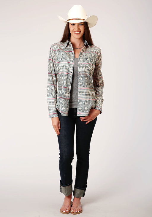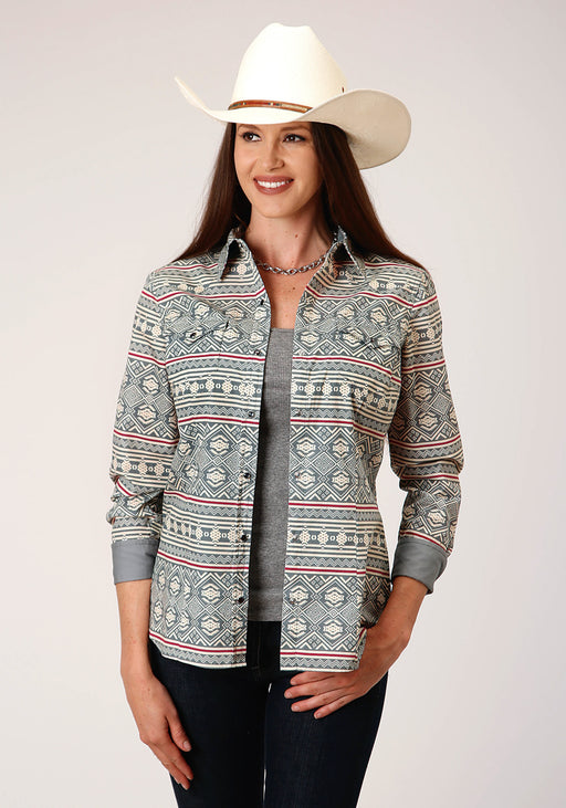 Roper Womens Grey 100% Cotton Tribal Texture L/S Shirt