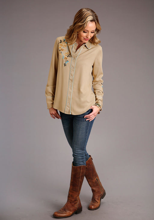 Stetson Womens Taupe Rayon/Nylon Aqua Twill L/S Blouse