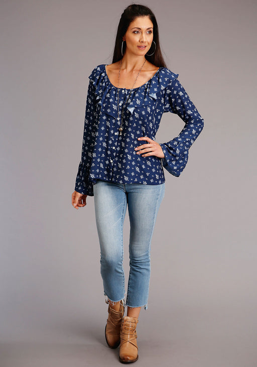 Stetson Womens Blue Rayon/Nylon Vintage Ditzy L/S HiLo Blouse