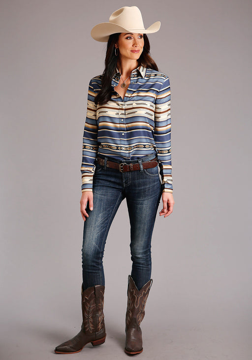 Stetson Womens Blue Rayon/Nylon Indigo Serape L/S Blouse