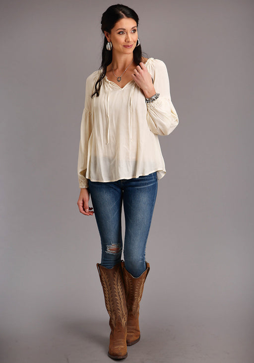 Stetson Womens Cream Rayon/Nylon Herringbone L/S Blouse