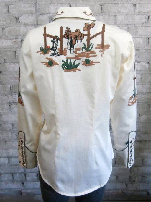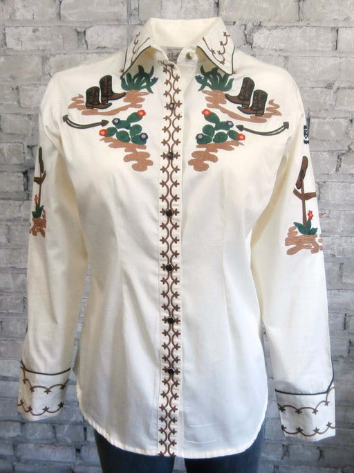 Rockmount Womens Ivory 100% Cotton Vintage Cactus & Boots L/S Shirt