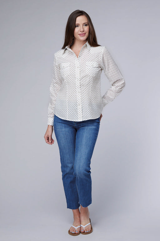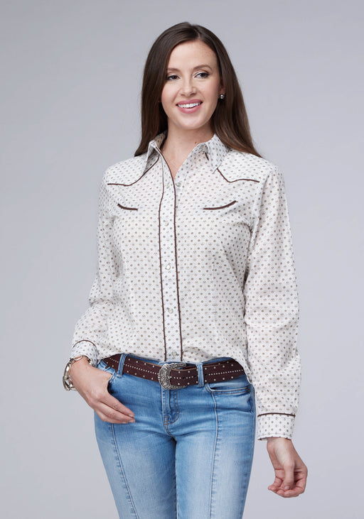 Roper Womens Diamond Wallpaper White/Cream Poly/Cotton L/S Shirt