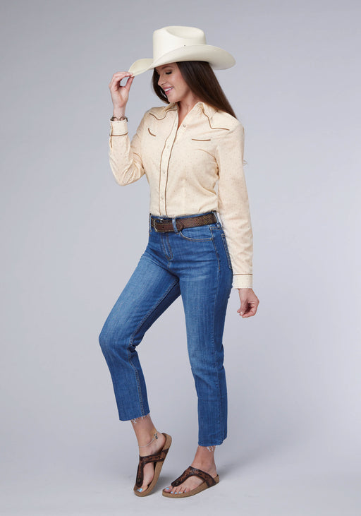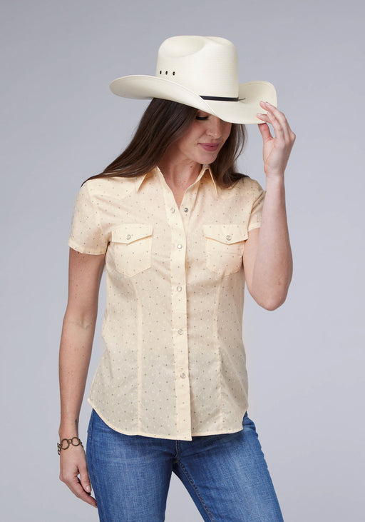 Roper Womens Diamond Wallpaper Cream Cotton Blend S/S Shirt