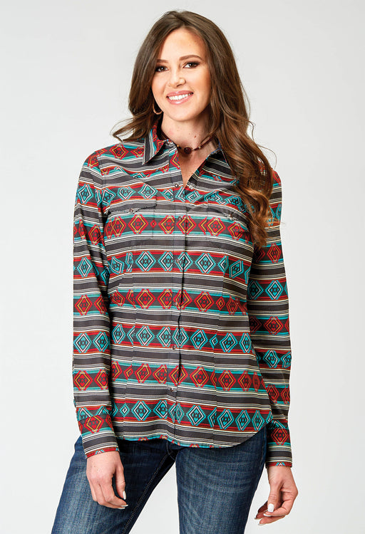 Roper Womens 1898 Aztec Stripe Red Multi 100% Cotton L/S Shirt
