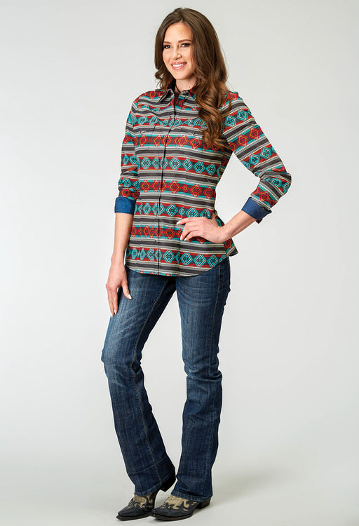 Roper Womens Sandstone Aztec Grey 100% Cotton S/S Shirt