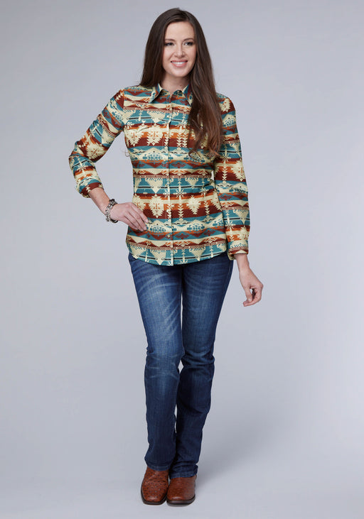 Roper Womens Horizontal Aztec Serape Multi-Color 100% Cotton L/S S/L Shirt
