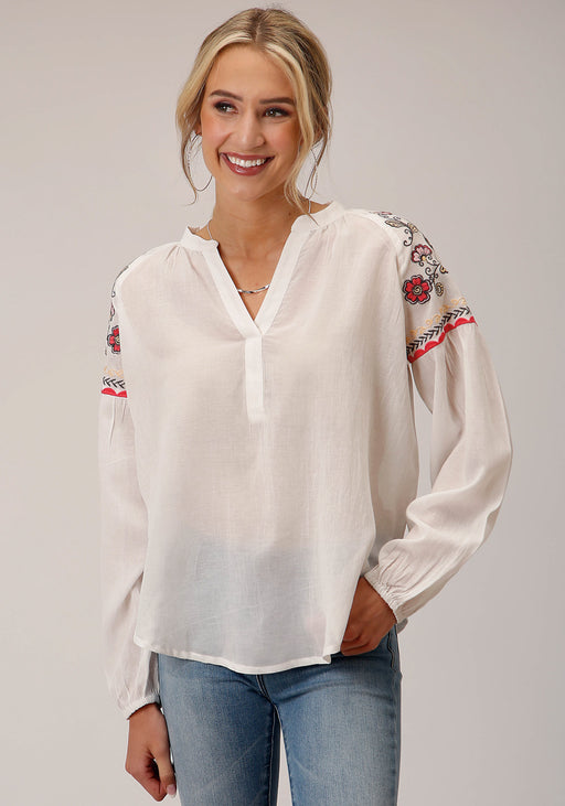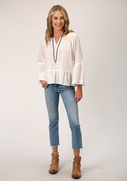 Roper Womens Split Front Neck White 100% Cotton L/S Blouse