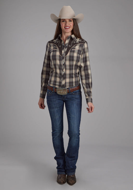Roper Womens 2108 Plaid Grey/Tan Cotton Blend L/S Shirt