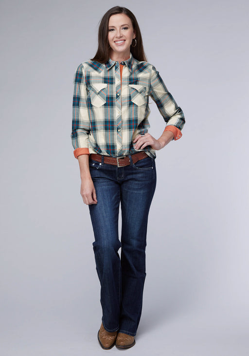Roper Womens 2128 Windowpane Plaid Multi Blue Cotton Blend L/S Shirt