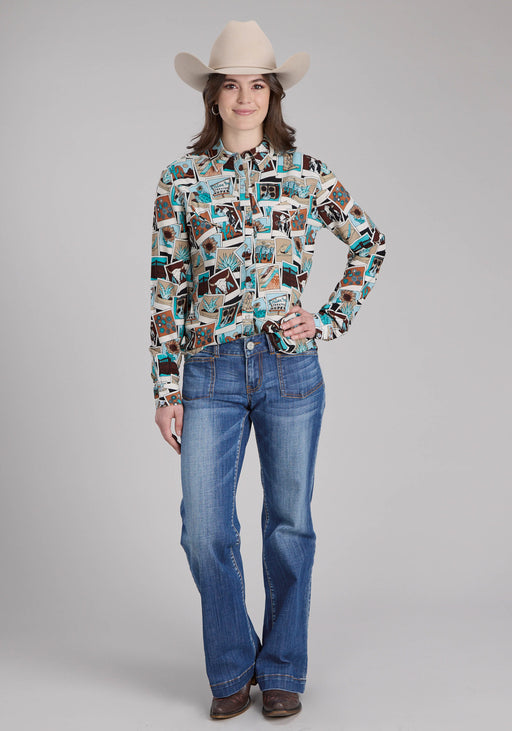 Roper Womens Photo Collage Multi-Color 100% Rayon L/S Blouse