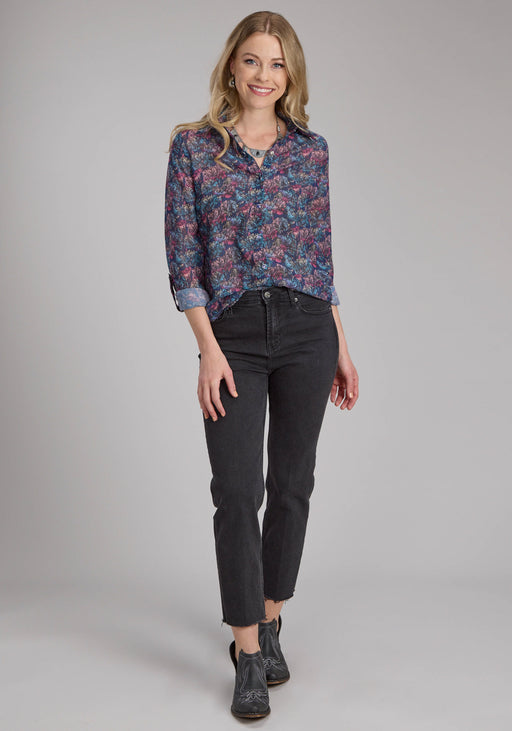 Roper Womens Gem Floral Keyhole Multi-Color 100% Cotton L/S Blouse