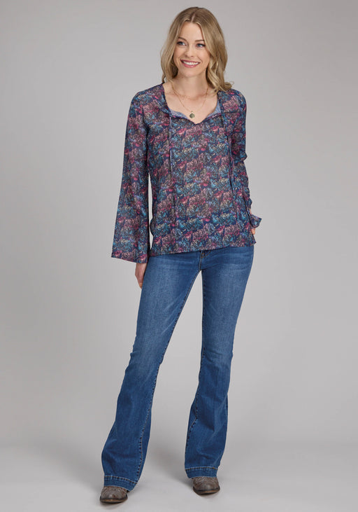 Roper Womens Gem Floral Georgette Multi-Color 100% Polyester L/S Blouse