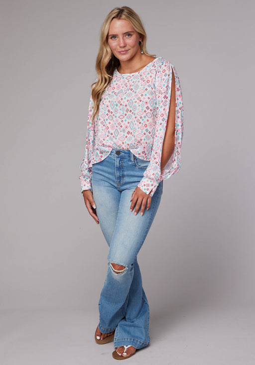 Roper Womens Scattered Aztec Multi-Color 100% Rayon L/S Shirt