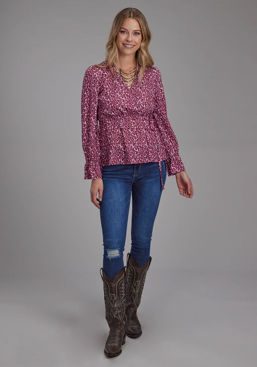 Roper Womens 2134 Leopard Red Multi 100% Polyester V-Neck L/S Blouse