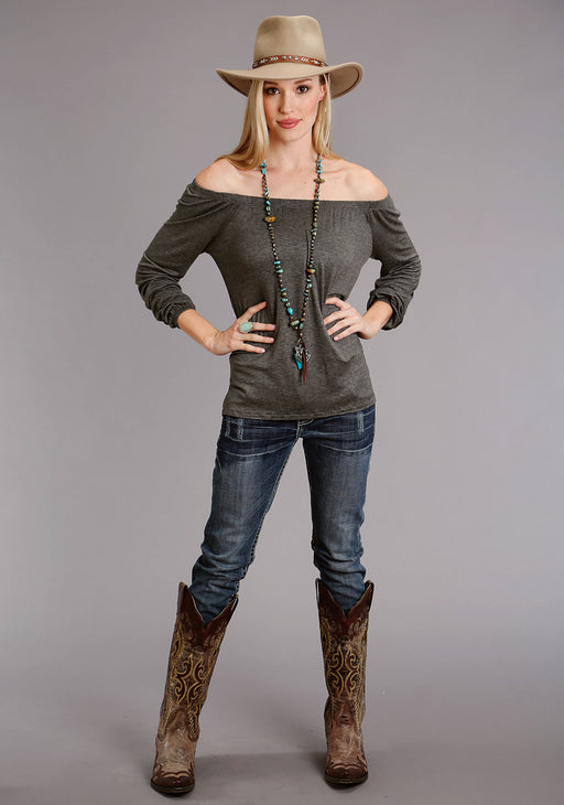 Stetson Womens Elastic Top Grey Rayon/Spandex L/S Tunic