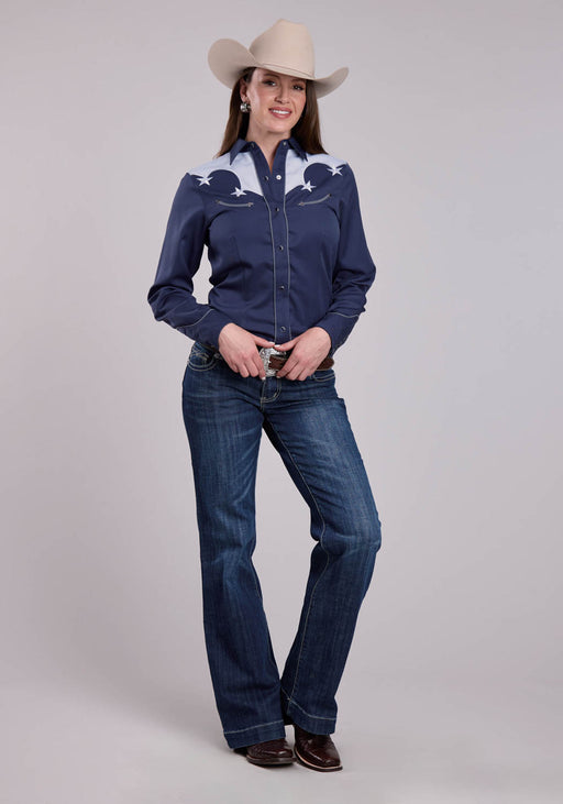Roper Womens Blue Poly/Rayon Yokes & Stars L/S Shirt