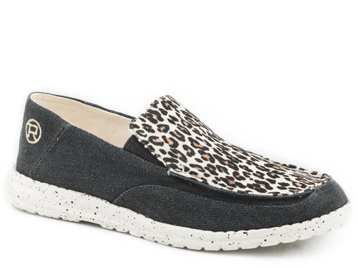 Roper Womens Black Fabric Hang Loose Slip On Leopard Loafer Shoes