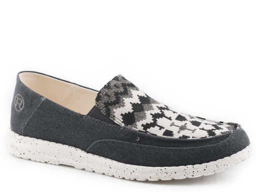Roper Womens Black Fabric Hang Loose Slip On Aztec Loafer Shoes