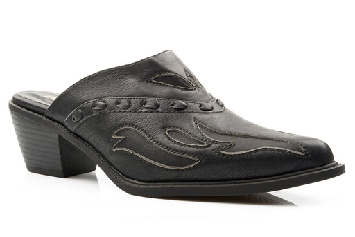 Roper Womens Fashion Black Faux Leather Laced Underlay J Toe Mules
