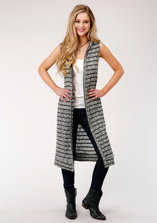 • Roper Womens Black/White Cotton Blend Hooded S/L Cardigan
