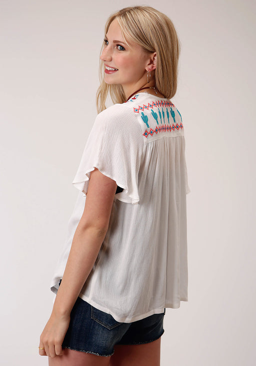 • Roper Womens Ivory Rayon/Nylon Crepe Cardigan S/S Blouse
