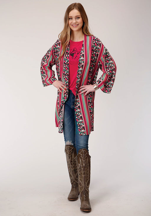 • Roper Womens Black Rayon/Nylon Floral Stripe Cardigan