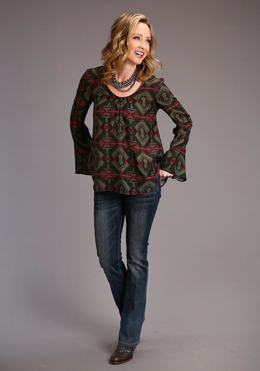 • Stetson Womens Brown Rayon/Nylon Challis Blanket L/S Pullover Blouse
