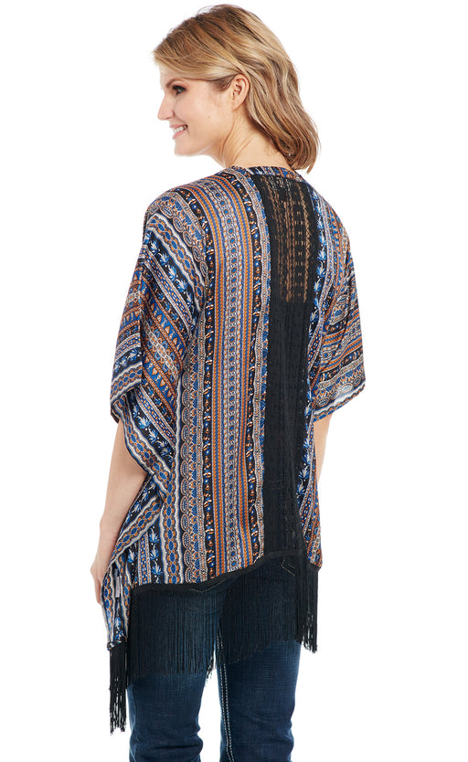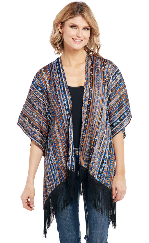 • Cowgirl Up Womens Multi-Color Polyester Fringe Hem Kimono Cardigan S/S