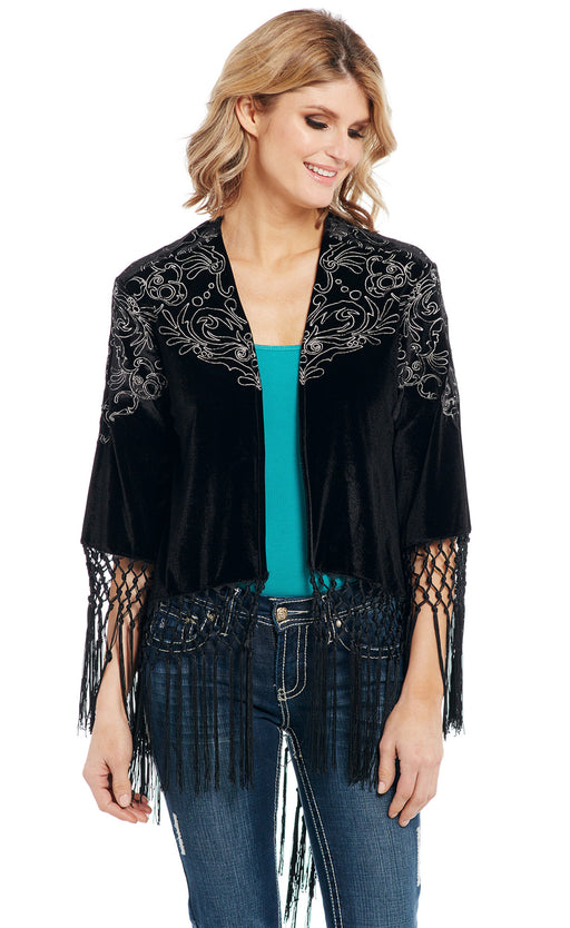 • Cowgirl Up Womens Black Polyester Velvet Wrap Cardigan S/S