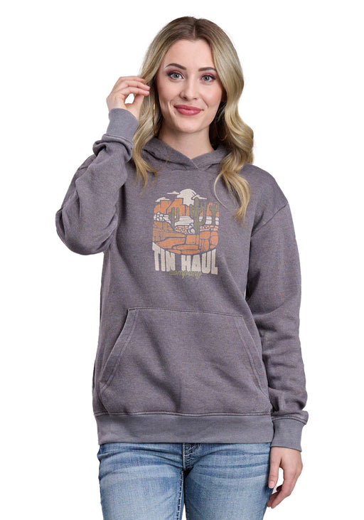 Tin Haul Womens Tri-Blend Script Heather Charcoal Poly/Cotton Hoodie