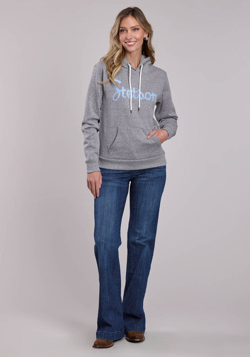 Stetson Womens Light Blue Script Logo Grey Cotton Blend Hoodie