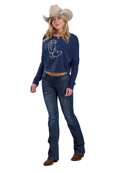 • Roper Womens Cowboy Boots Navy 100% Cotton Sweatshirt