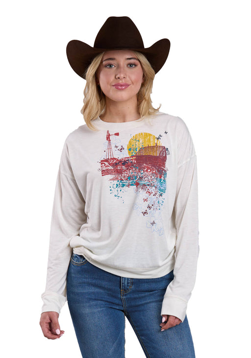 • Roper Womens Boxy Fit Farm Multi-Color Poly/Rayon Sweatshirt