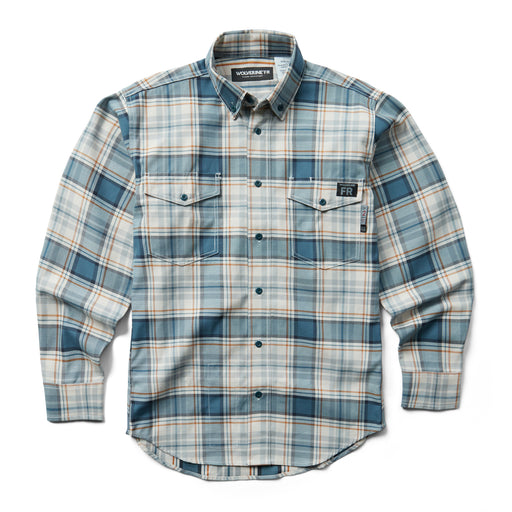 Wolverine Mens FR Plaid Twill Navy/Red/White Cotton Blend L/S Shirt
