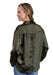 Stetson Womens Satin Collared Yoked Olive 100% Polyester L/S Blouse